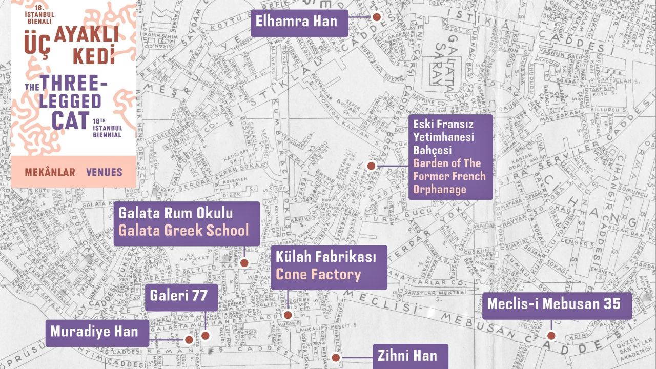Christine Tohmé küratörlüğünde “Üç Ayaklı Kedi” başlığıyla düzenlenen bienalin ilk ayağı “kendini koruma” ve “gelecek olasılıkları” temaları etrafında şekilleniyor. Bienalde yer alan 30’u aşkın ülkeden 47 sanatçının eserleri; Elhamra Han, Eski Fransız Yetimhanesi Bahçesi, Meclis-i Mebusan 35, Külah Fabrikası, Zihni Han, Galeri 77, Muradiye Han ve Galata Rum Okulu’nda 23 Kasım’a kadar ücretsiz ziyaret edilebiliyor.